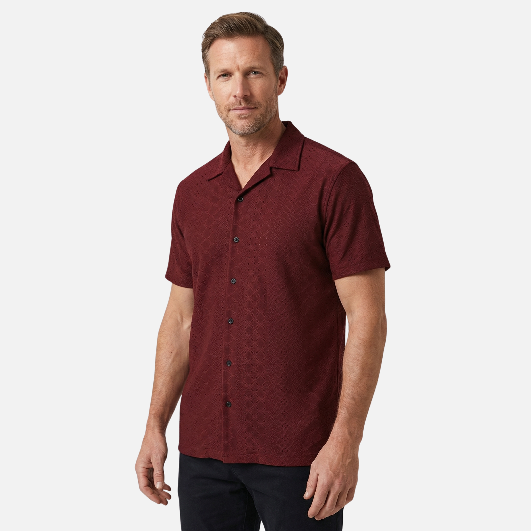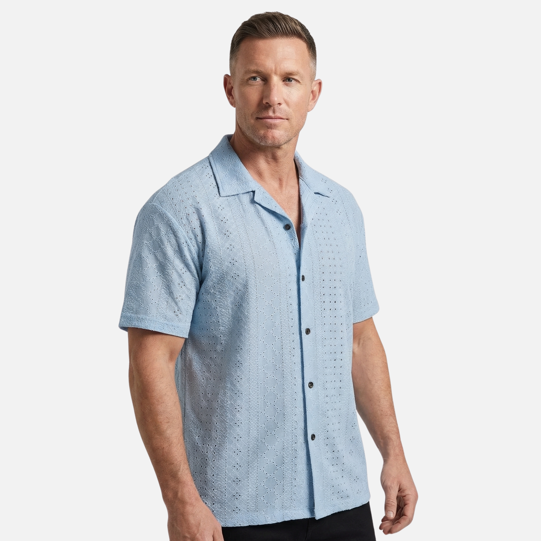 Ανδρικό καλοκαιρινό πουκάμισο από ζακάρ πλεκτό – Γιακάς Κούβας και άνετη εφαρμογή