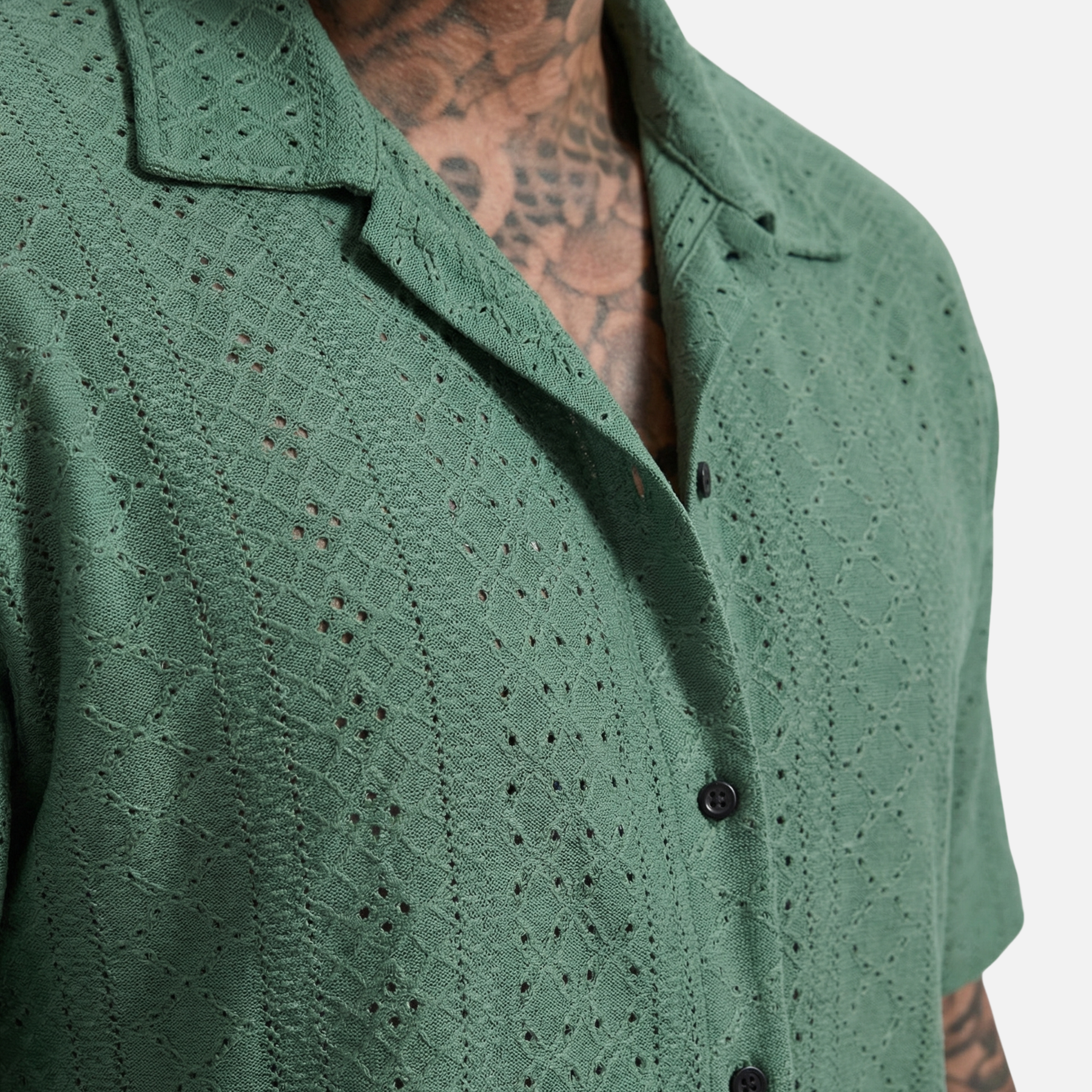 Αυτό το κοντομάνικο πουκάμισο προσφέρει μια σύγχρονη ερμηνεία της καλοκαιρινής ένδυσης. Με κλασικό γιακά Cuban και έντονη υφή Jacquard πλεξίματος, το μοντέλο προσφέρει μια δομημένη αλλά ταυτόχρονα αέρινη αίσθηση. Η κανονική εφαρμογή πέφτει φυσικά στο σώμα, ενώ η συνεχόμενη σειρά κουμπιών μπροστά και το ίσιο τελείωμα προσφέρουν καθαρές, λειτουργικές λεπτομέρειες.