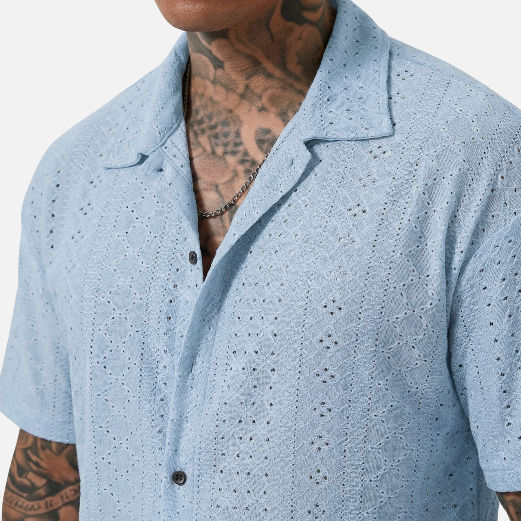 Ανδρικό καλοκαιρινό πουκάμισο από ζακάρ πλεκτό – Γιακάς Κούβας και άνε
