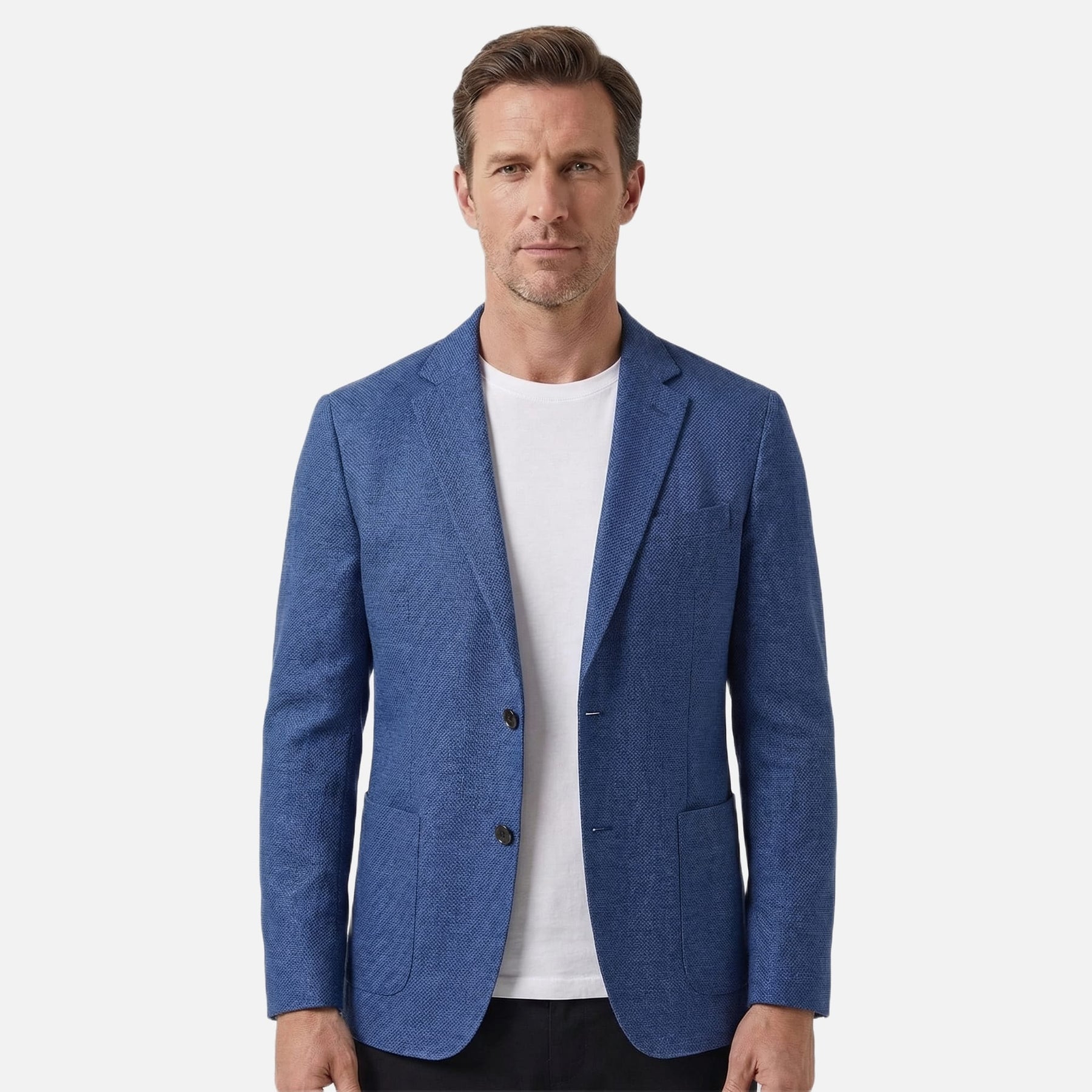 Men's Slim-Fit Blazer in Lightweight Wool Blend with Side Pockets