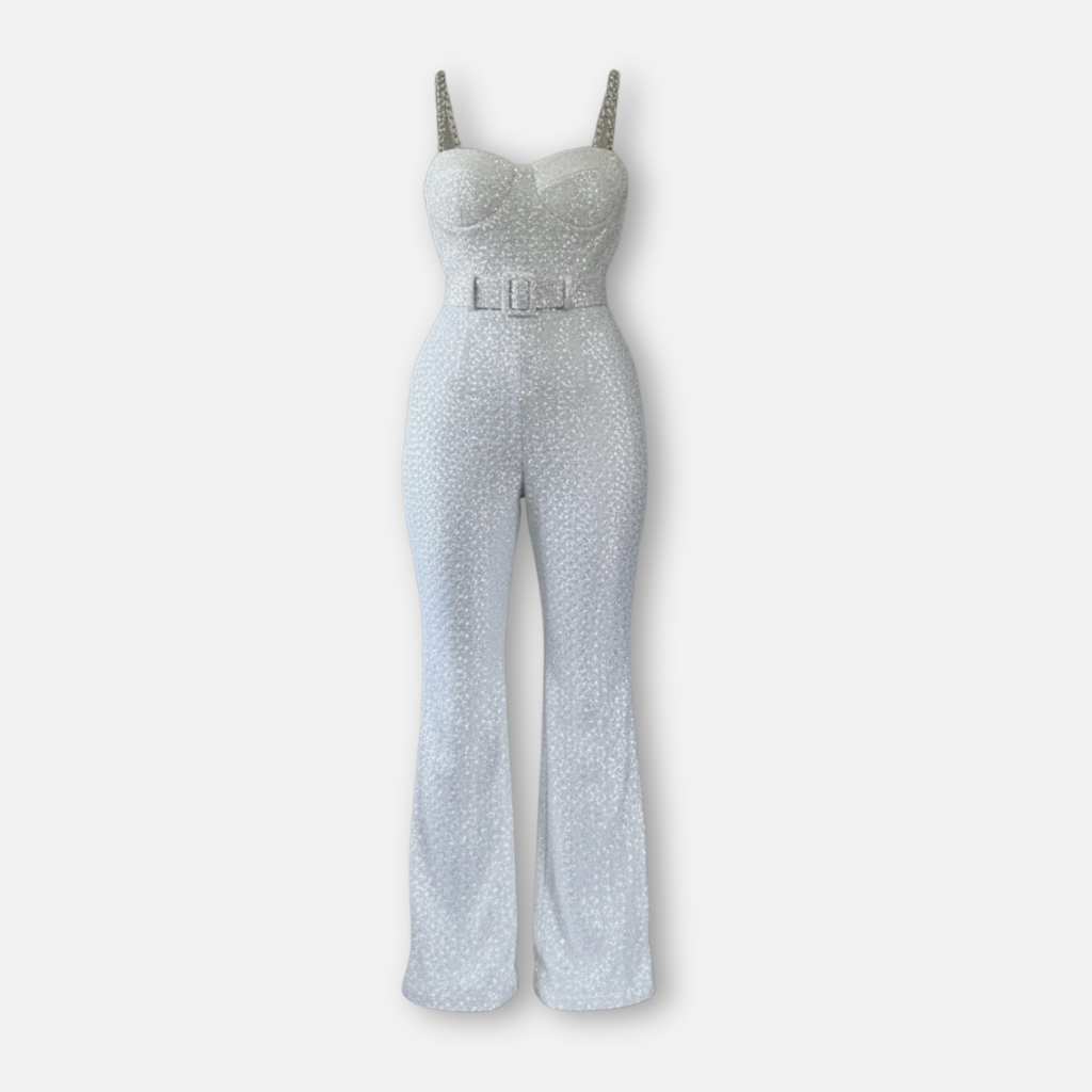 Glitzernder Jumpsuit mit weitem Bein für Frauen
